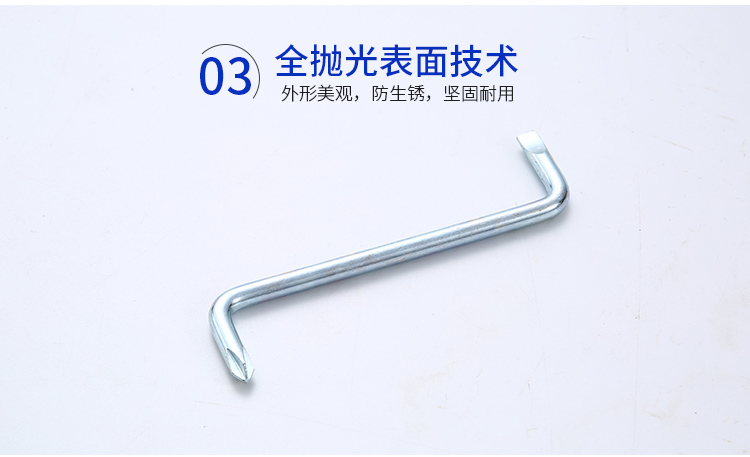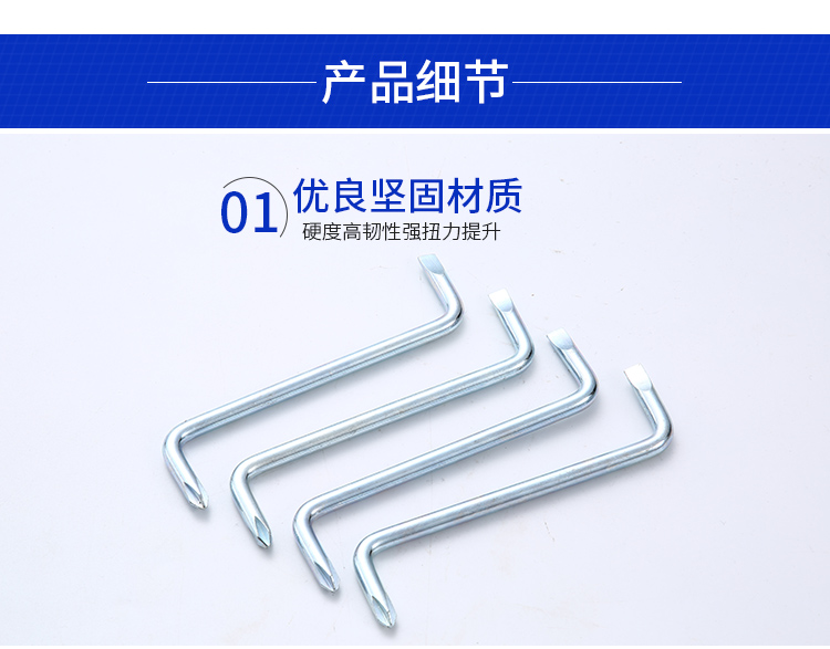梅花內(nèi)六角扳手都有彎頭,常見的彎頭角度在10°?45°之間,從側(cè)面看旋轉(zhuǎn)螺栓部分和手柄部分是錯(cuò)開的。